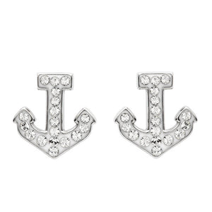 Anchor Stud Earrings Encrusted With White Swarovski® Crystal