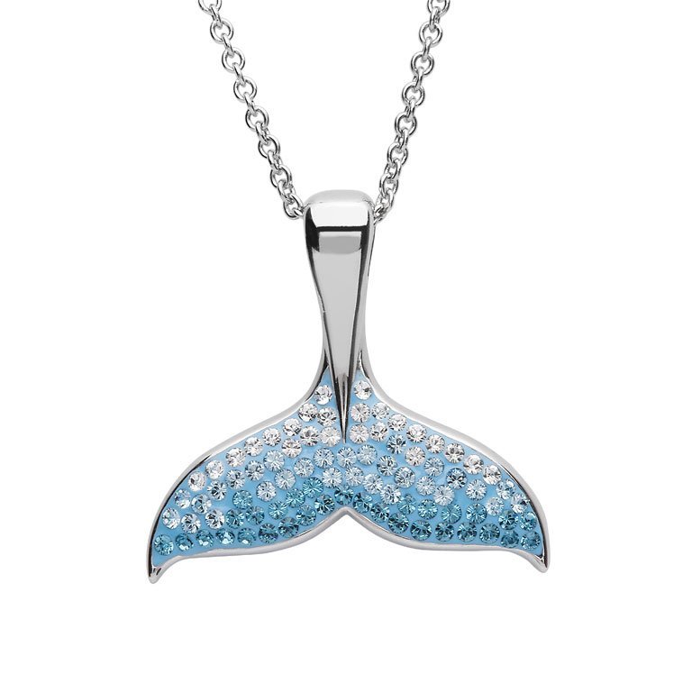 The Blue Whale Tail Pendant Necklace is an alluring piece of jewelry perfect for complementing your evening look. Crafted in Sterling silver and adorned with sparkling Swarovski® crystals, its stylish pendant features a curvaceous turquoise blue whale tail topped by a plain silver bail for the accompanying chain to pass through.