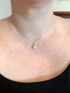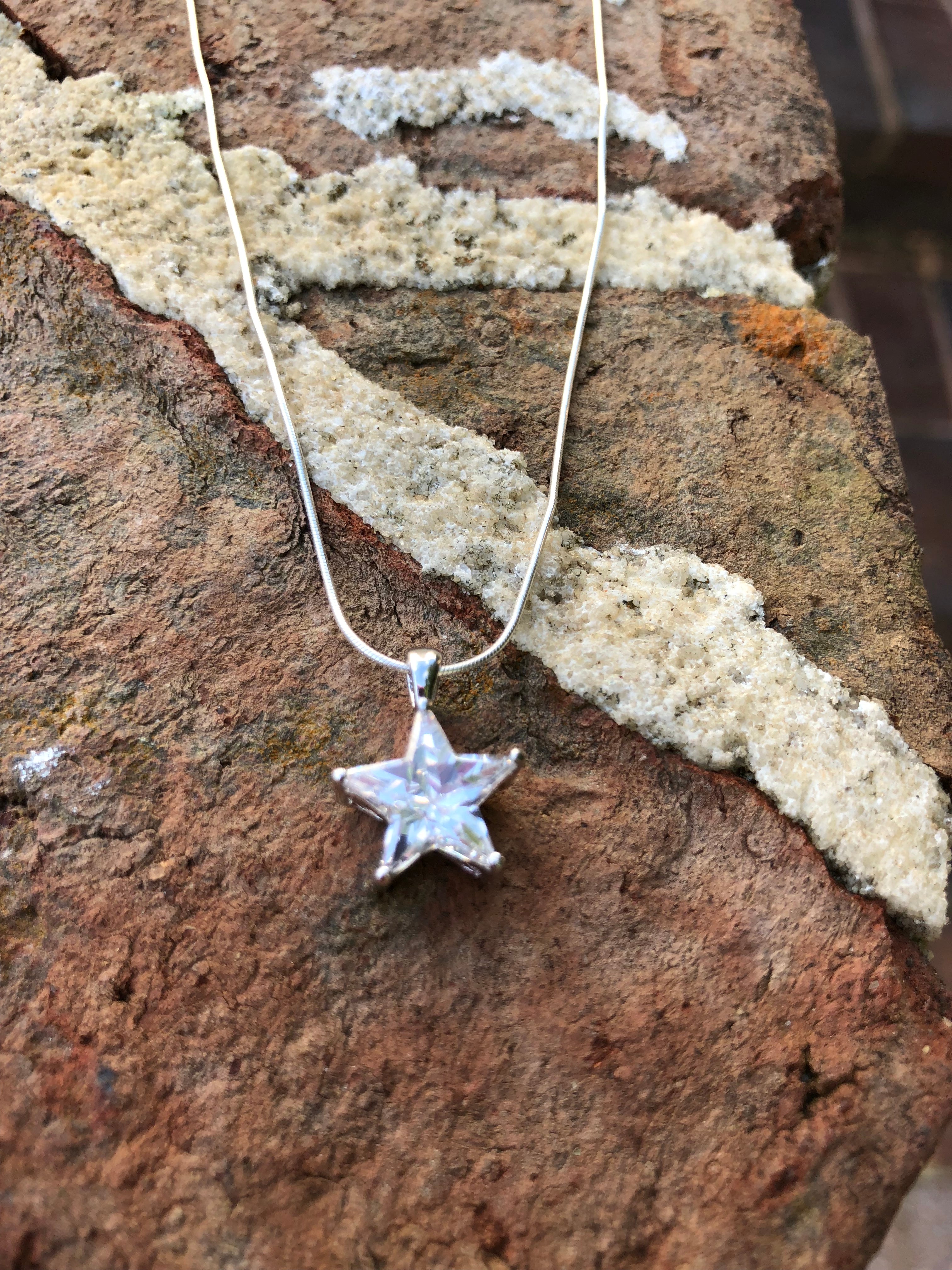 Shine like the stars with this .925 Sterling Silver CZ Star on a thin 16 inch sterling silver thin snake chain. Pendant only available.