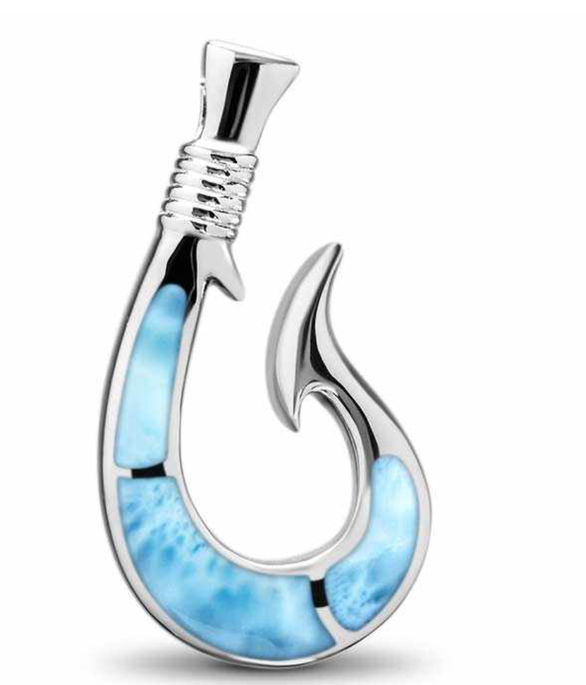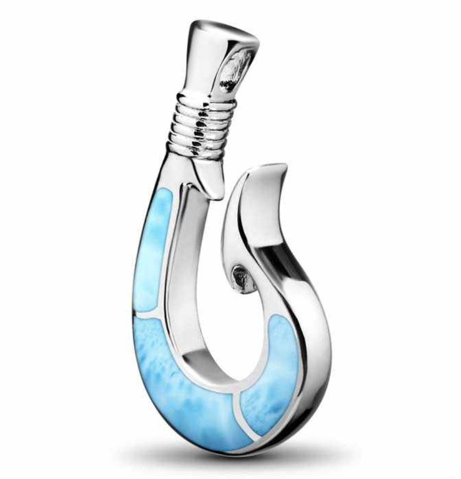 Our breathtaking, imaginative Fish Hook necklace will get you so many compliments! Highly-polished sterling silver and gleaming larimar in a unique and captivating design. Perfect!
