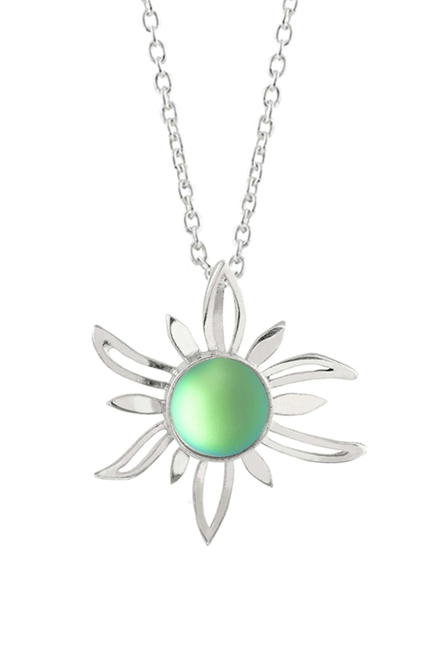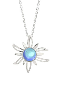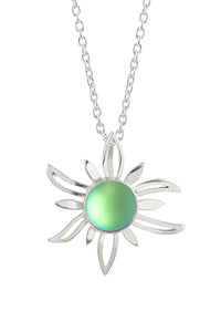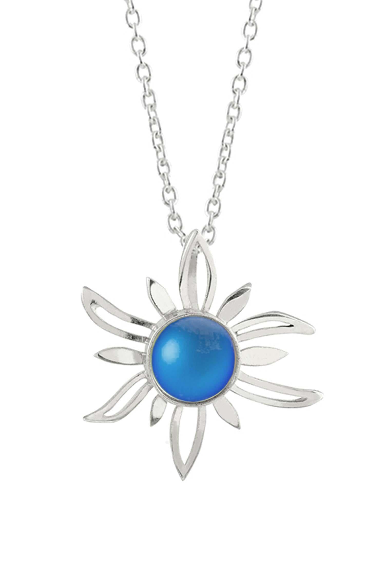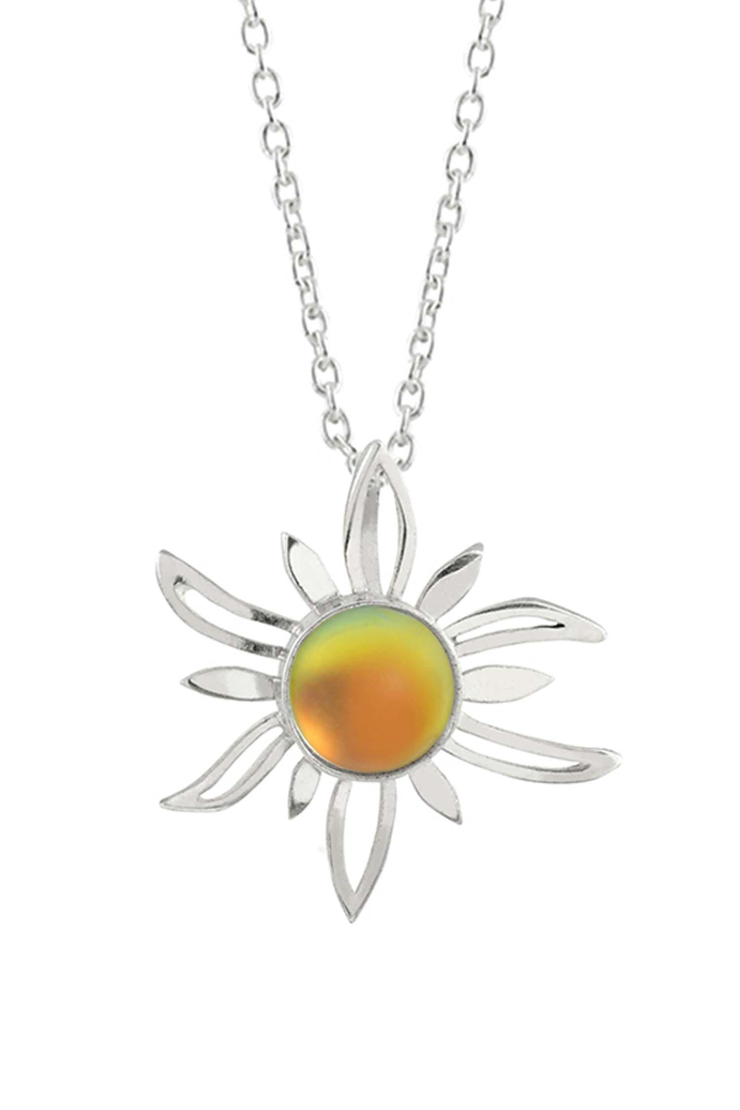 Let your bright personality shine with this hand-crafted Sterling Silver Crystal Sun Pendant. Add some flair to your everyday look. Sterling silver .7mm box chain, 18" included with pendant.