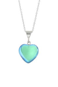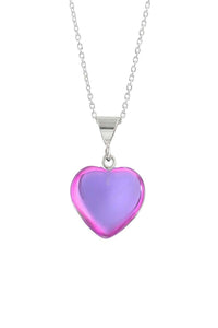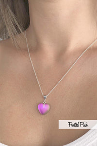 Our Small Crystal Heart Pendant is a great gift idea for the little ones to show them your love. Our pendant shines with an iridescent glow of color from within. We also create a crystal Large Heart Pendant for a bolder statement piece. You can match either pendant with our crystal Heart Earrings. Sterling Silver components. Sterling silver 1mm cable chain, 16" included with pendant. Dimensions: 1"H (including bale) x .75"W