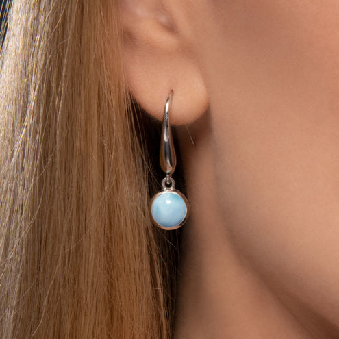 Luminous rounds of larimar fall from a polished sterling teardrop in this uniquely graceful design. These simple and chic earrings are the perfect addition to any wardrobe, any time!