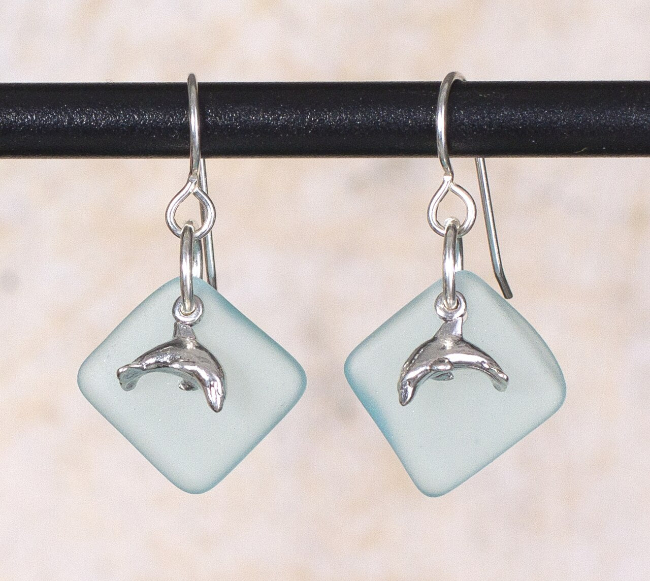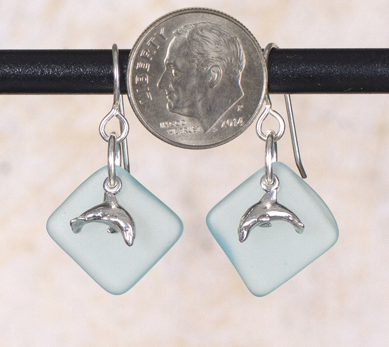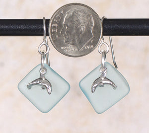 Beautiful Seaglass and sterling silver earrings, made with recycled metal.  Handmade in the USA, shown in Ocean