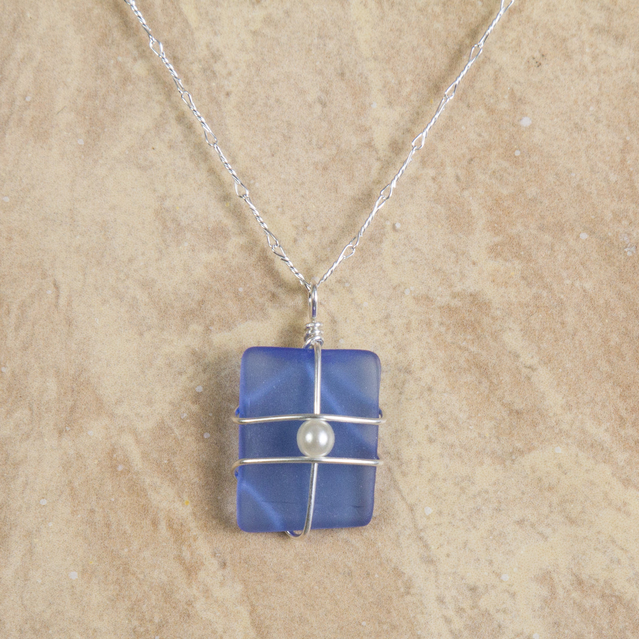 Beautiful Seaglass on a sterling silver 18" chain. Handmade in the USA, shown in Cornflower