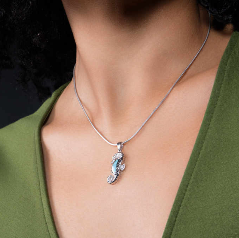 Our Seahorse necklace is absolutely beautiful, with highly polished sterling silver and a friendly attitude. It moves with a life of its own and will easily become your new good luck charm!