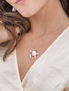 Gorgeous Hand crafted .925 Sterling Silver Sea Turtle Necklace.