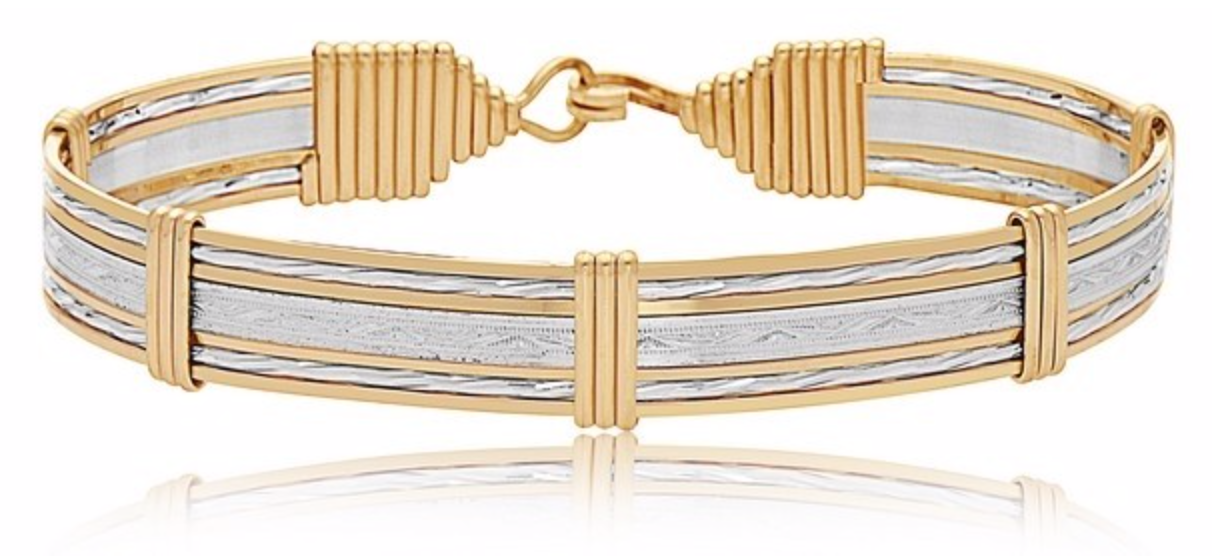 The Inner Beauty has a very detailed silver bar in the center with two strands of 14KT gold artist wire on the sides of the bar.